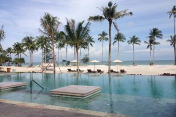 The villa we stayed was beautifully decorated. Thoughtful room refreshment, tropical fruit and other healthy bites. Every room had a terrace overlooking the magnificent well kept pool and beach. The beach was stunning white sand, with more than enough loungers for everyone, which were well spaced out. I knew we will take some good pictures here.